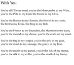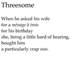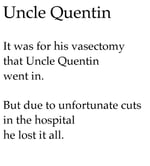 A.F. Harrold's comic genius is very much to the fore in this collection of poetry. Mr Harrold (or A.F. To his friends) utilises his considerable poetic dexterity to beguile, charm, dazzle and amuse as he introduces the reader to thirteen ways to be related to The Beatles, Uncle Billy, The dedicated Nudist and many other of his rather odd relatives. Mr Harrold details his extensive collection of literary memorabilia, muses on life, love and the absurdity of cardboard boxes, and warns of the dangers of precariously balanced pianos. Be warned this book will cause serial outbreaks of mirth, but do not underestimate the calibre of the poetic talent that rather cleverly delivers that laughter.