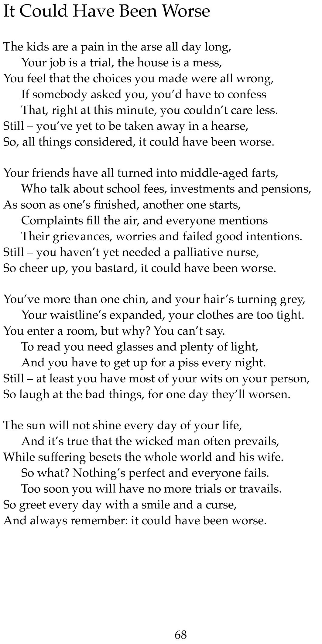 Fergus McGonigal takes Ogden Nash’s notion of a poem being an essay which rhymes and targets the unsentimental truth about parenthood, pseudo-intellectual pretentiousness and pomposity, and what happens when the idealism of youth has given way to the disappointment of middle-age. As you would expect of a slam veteran, Fergus’s poems are comic entertainments but beneath the manic laughter there always lies a grain of familiar truth.